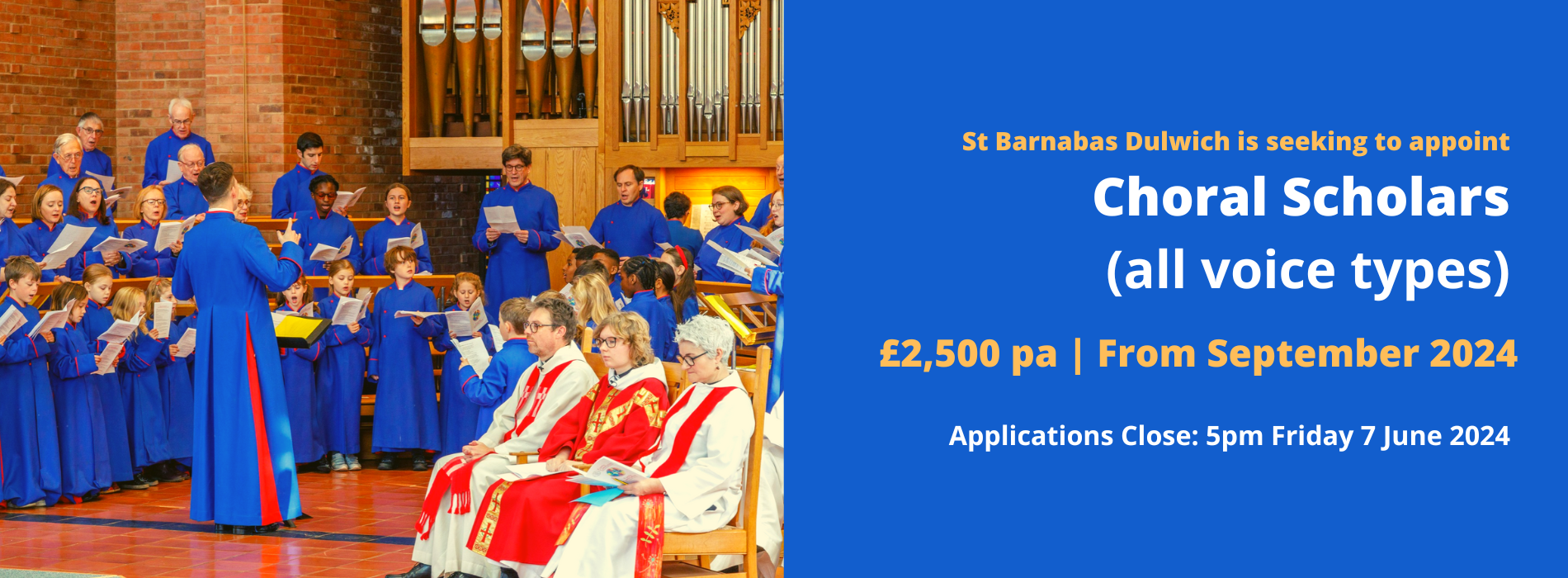 To apply, send a CV and covering letter, along with contact details for two referees, to the Assistant Director of Music, Owen Elsley, at adom@stbarnabasdulwich.org.